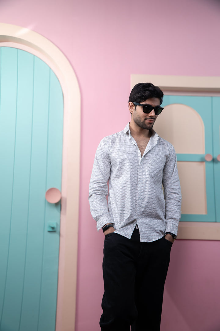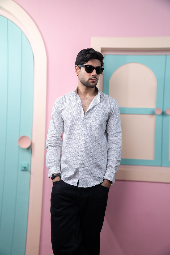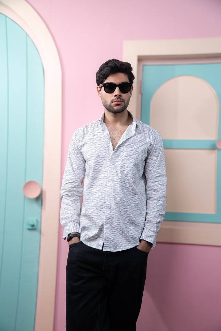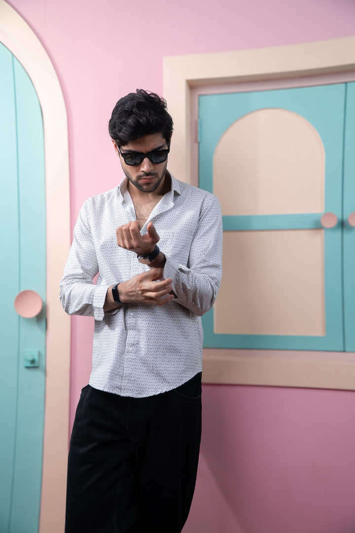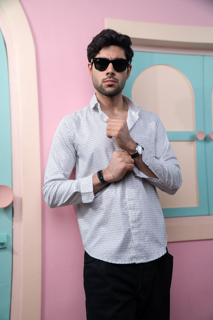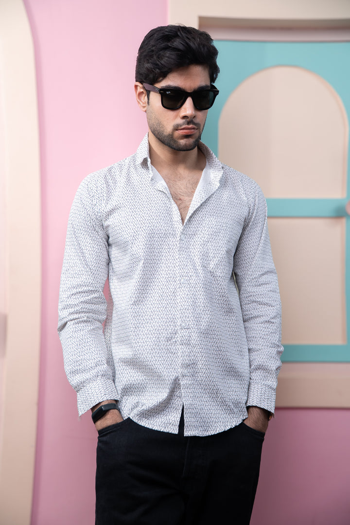 Black Symetrical Triangle Print Full Sleeves Shirt