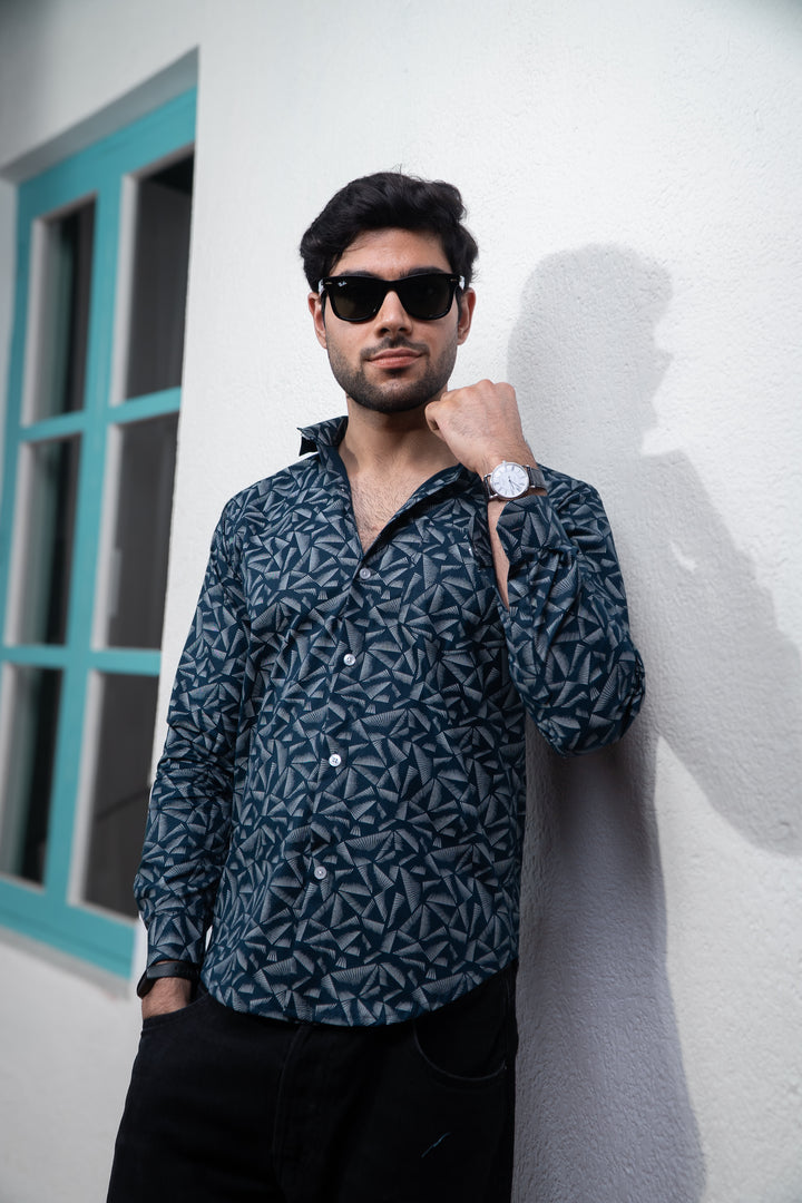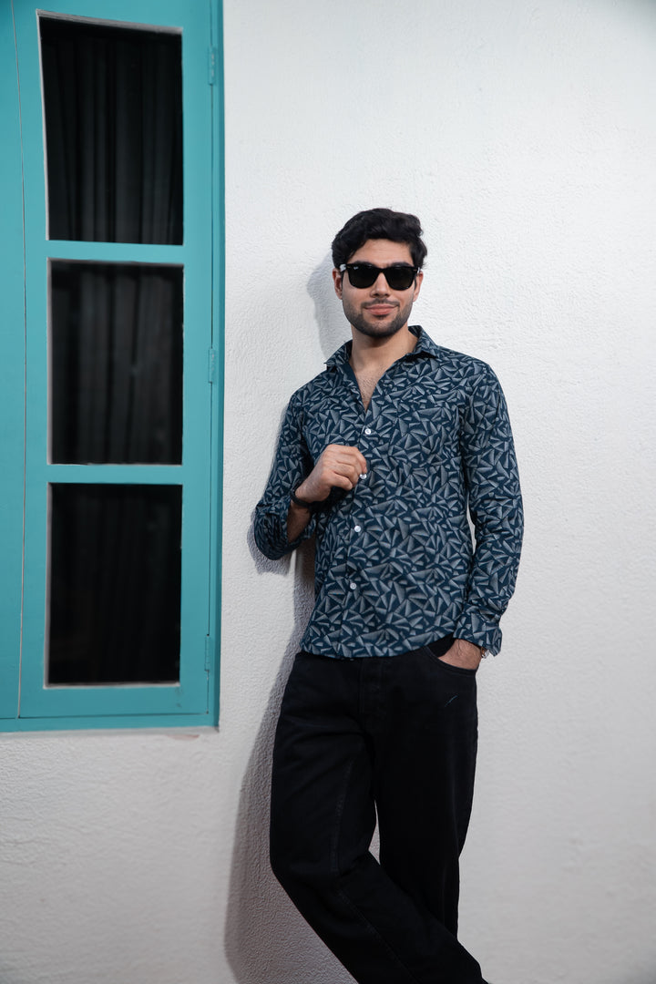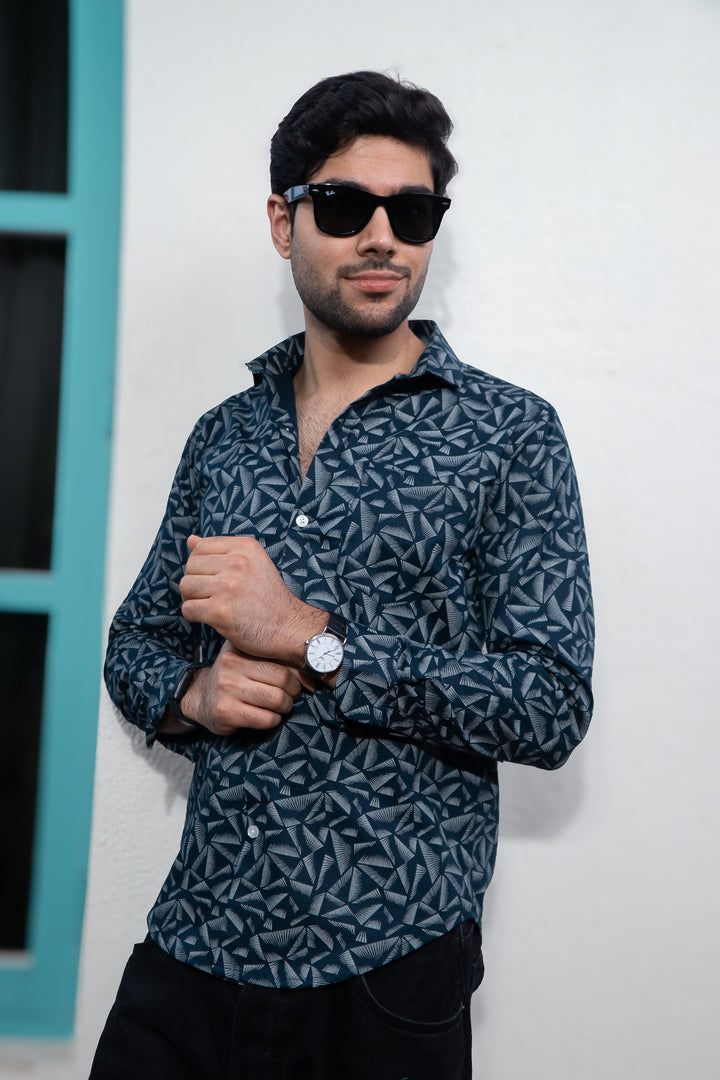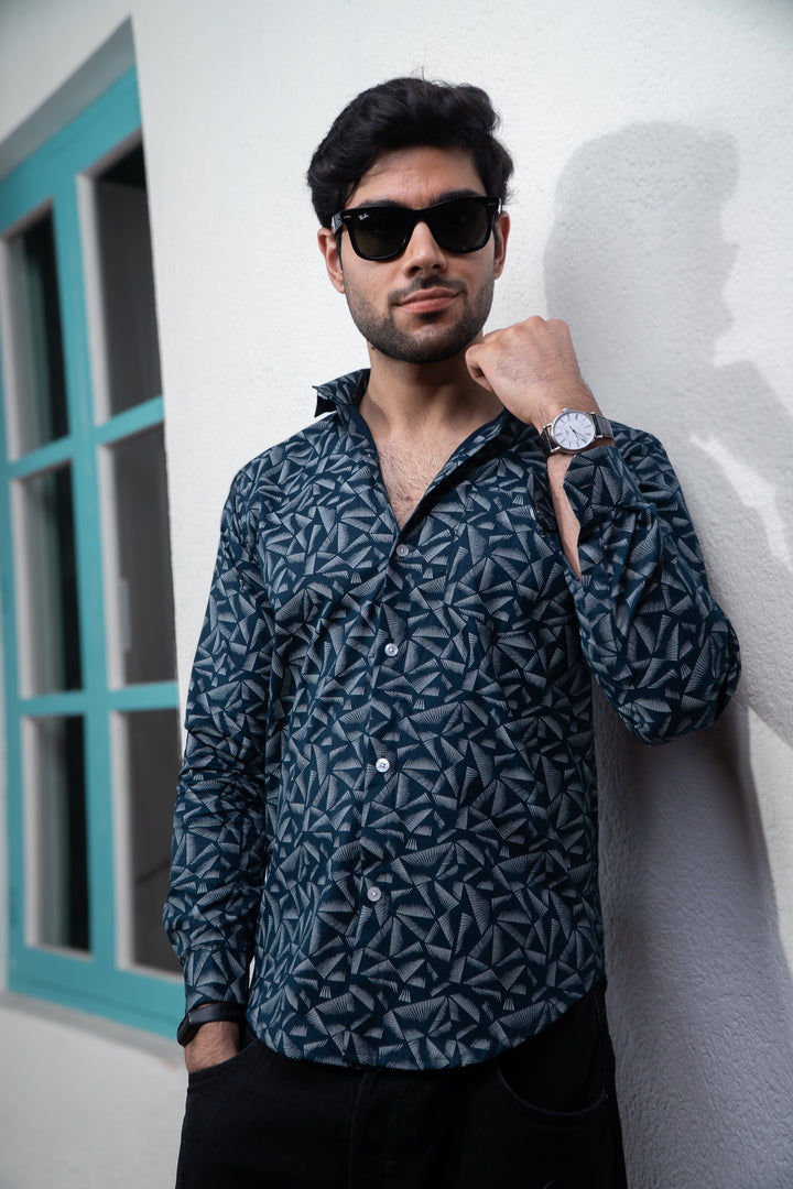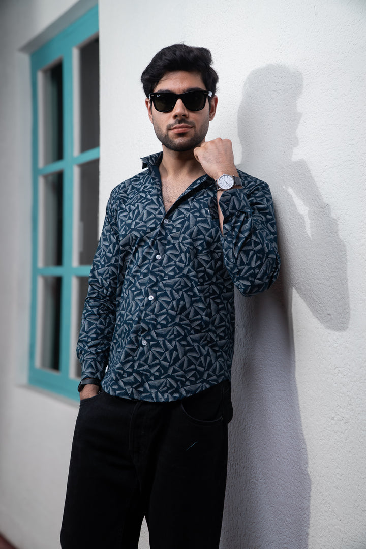 Bottle Green Floral Printed Full Sleeves Mens Shirt
