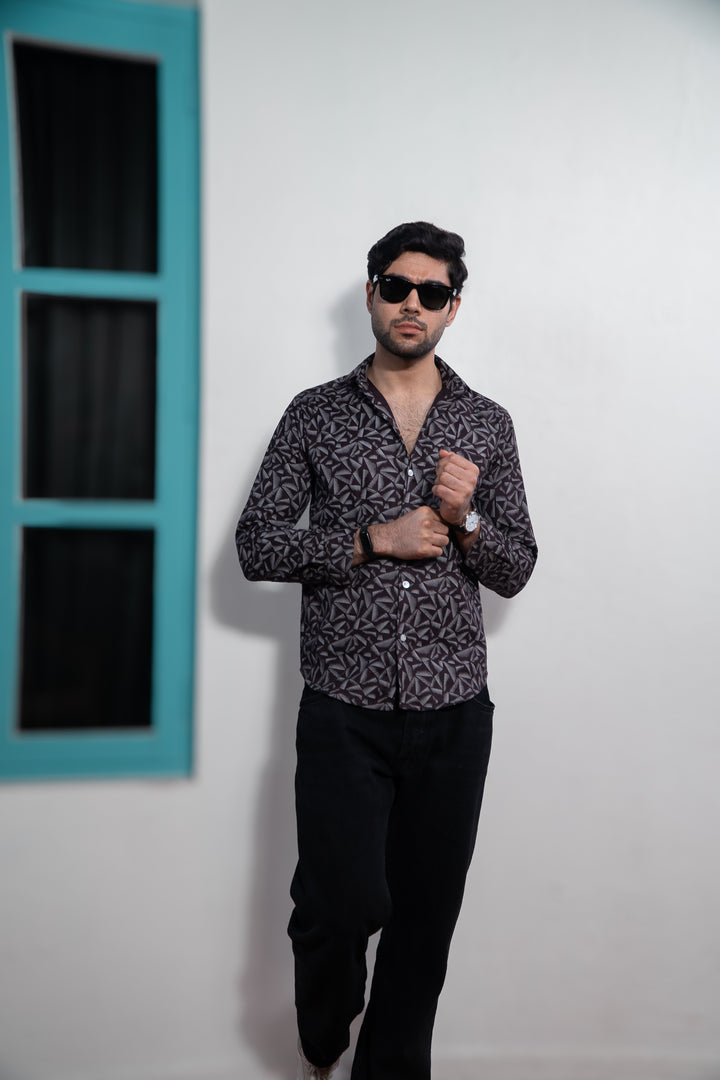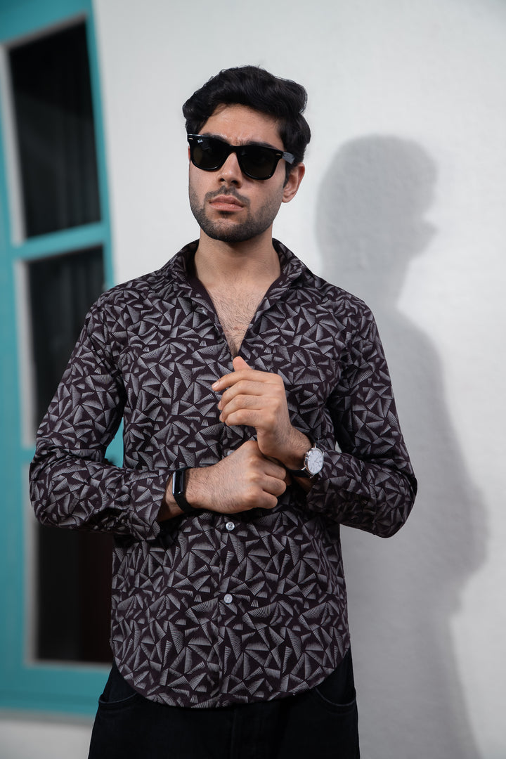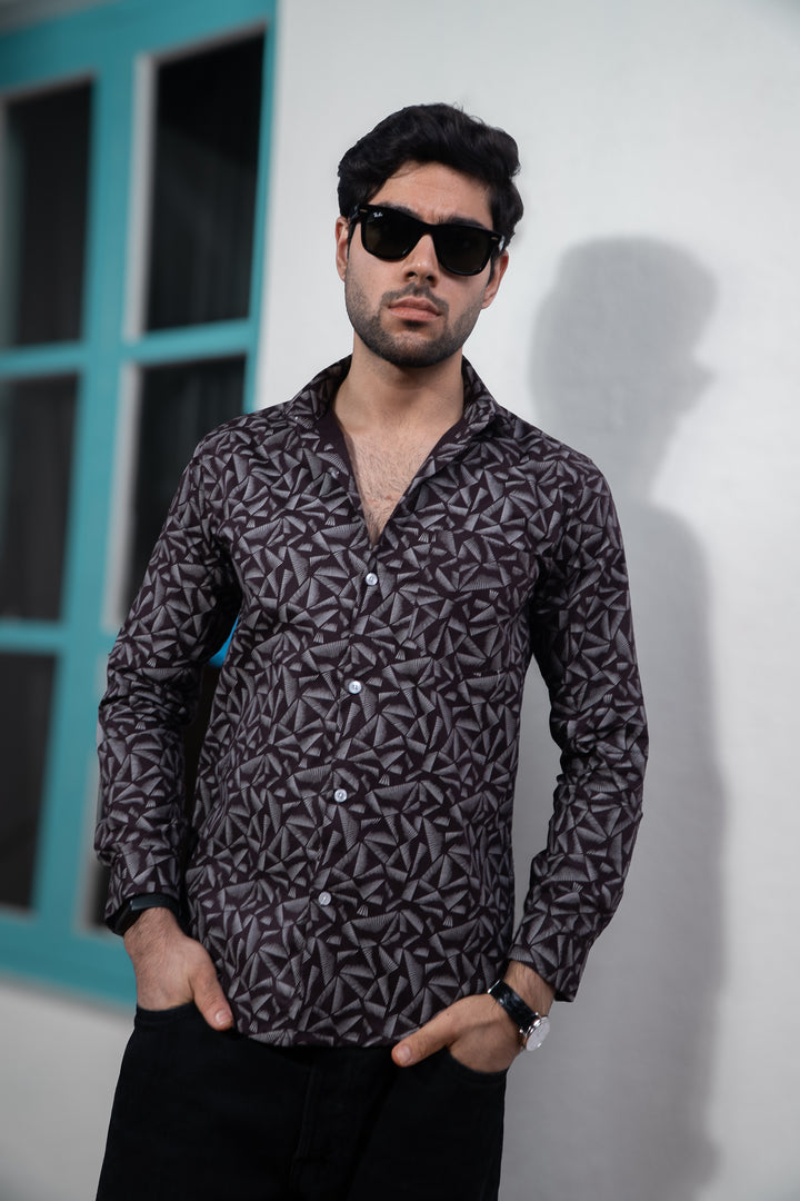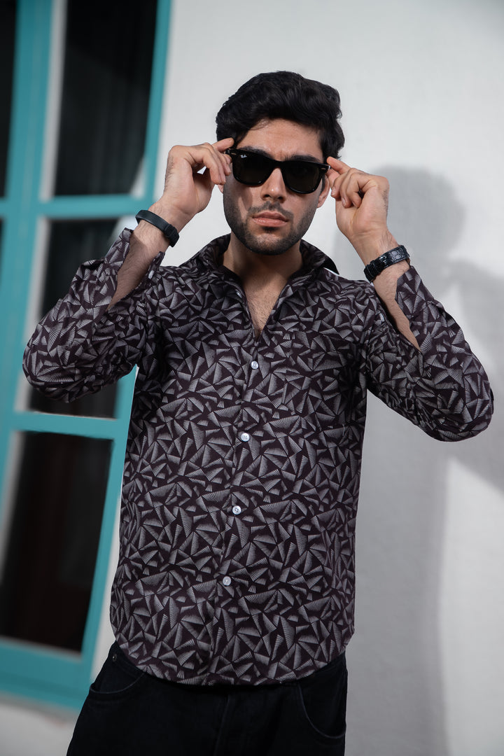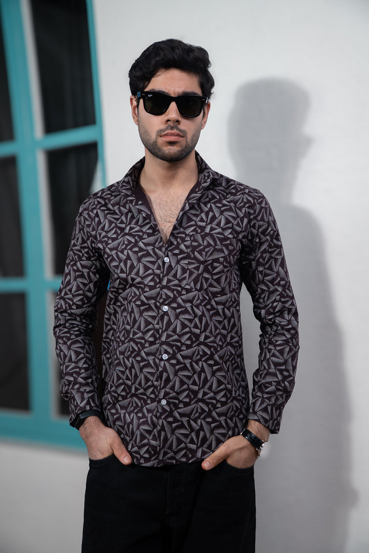 Floral Prints Wine Color Full Sleeves Mens Shirt