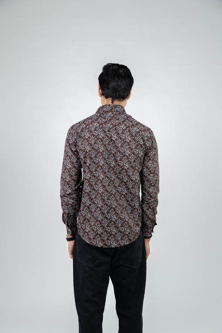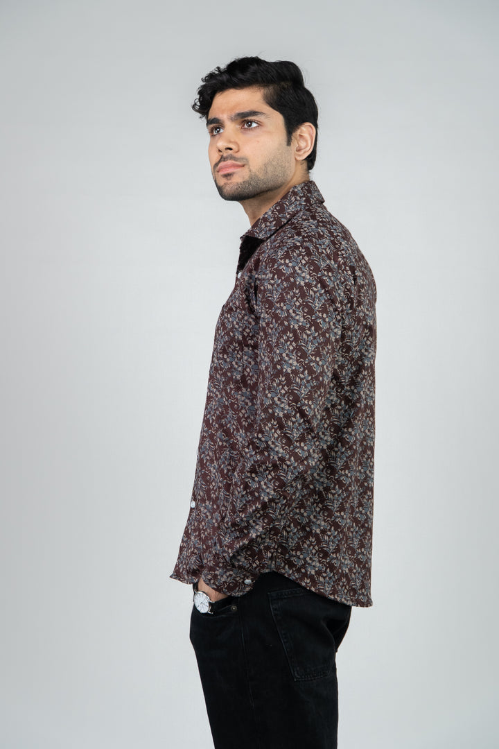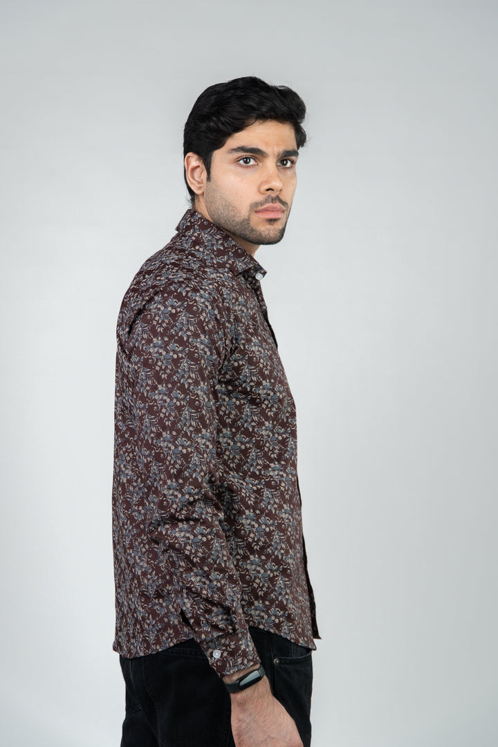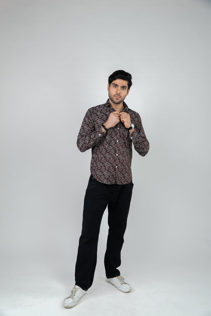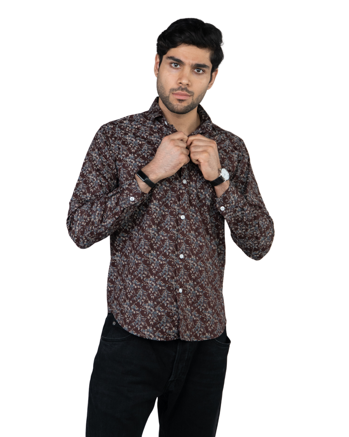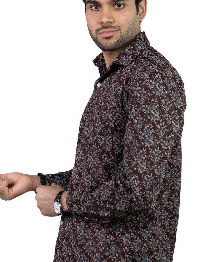 Maroon Floral Printed Full Sleeves Mens Shirt