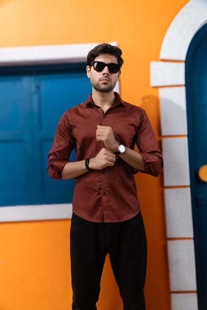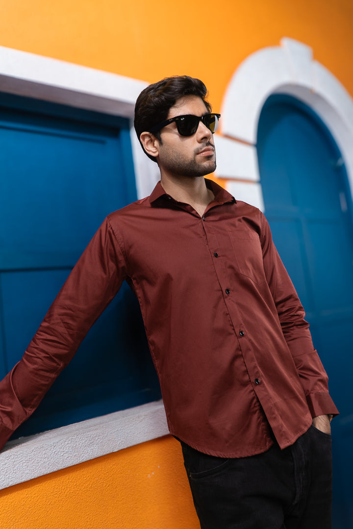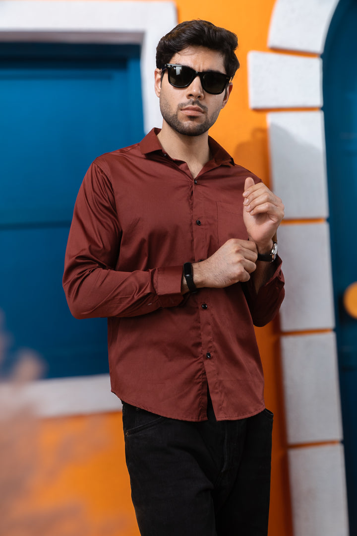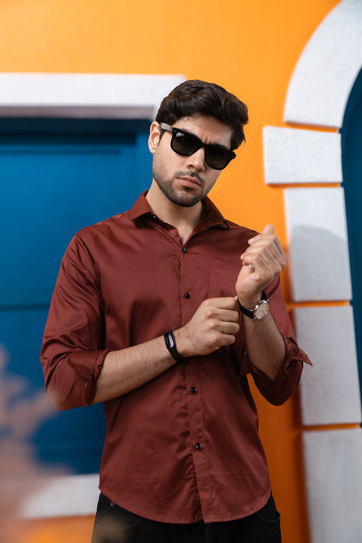 Rust Golden Office Wear Mens Formal Shirts